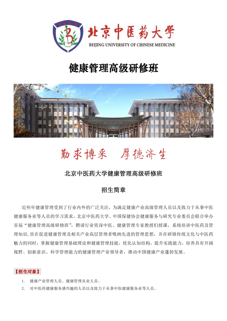 澳门信誉最好十大平台首届健康管理高级研修班招生简章