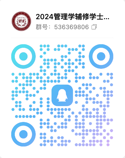报名咨询:可加入“2024管理学辅修学士学位报名咨询群”(QQ搜索群号536369806或扫描下方二维码入群,入群后把昵称改为“学院+学号+姓名”),或扫码加入微信群进行咨询。