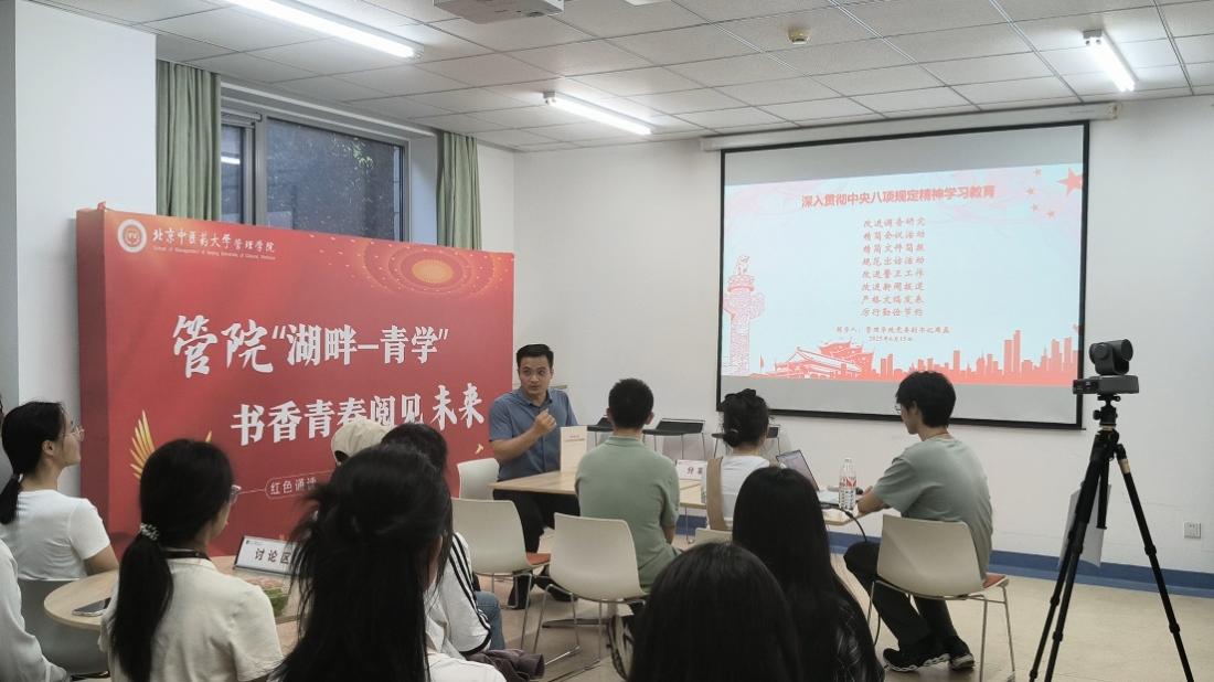6月26日,一支部在“湖畔·青学”阅读室围绕中央八项规定精神及其细则展开深度研讨。支部书记带领党员认真研读《习近平关于加强党的作风建设论述摘编》及《党政机关厉行节约反对浪费条例》。读原著、悟原理、学规定、强作风,学生党员深刻认识到作风建设的长期性、复杂性和艰巨性。学习过后,党员们结合实际展开讨论,分享学习、工作中的体会与不足,并提出改进建议。支部党员一致表示,将以此次学习为契机,切实转变作风学风,以更加务实的态度和行动,推动支部工作高质量发展,为党的事业贡献力量。