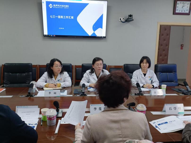 抵达七三一医院后,双方在行政楼会议室进行了交流座谈。七三一医院党委书记杨姝雅详细介绍了医院的基本情况、主要工作、2025年计划和发展思路,并展现了七三一医院未来的宏图远景。