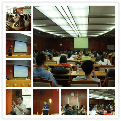 堵丁柱教授所研究的计算社交网络,是一门具有广泛的应用背景、用图的方式分析各种社会关系网络的交叉学科。报告中,堵教授介绍了社交网络、在线社交网络、社团结构和谣言阻止四个方面的入门知识和一些交叉应用背景,以friendship network、co-authorship network和flight map为例阐述了小世界网络的定义及结构性质,讲解了运用寻找网络中的社团结构阻止谣言传播的方法。在最后的互动环节中,堵教授与听众就这一全球化的研究热点进行了深度交流。历时两个多小时的报告获得了巨大的成功,与会的同学们表示,报告为大家提供了一个与国际学术大师面对面交流的平台,让家了解了当代学术前沿的动态,拓展了大家的研究视野和思路;同时,到会老师们学术上不断求新的意识,也令同学们对若谷的学者风范有了更深的领悟。
