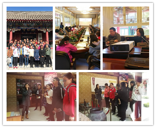 在前期课堂导读结束后,为加深新生对所学专业的形象认知,进一步了解对医药企业的经营发展脉络,10月10日上午,18药管班全体同学在班主任周磊老师和教学办公室陈超老师带领下,赴位于崇文门附近的北京同仁堂(集团)有限公司总部进行实践导读学习。