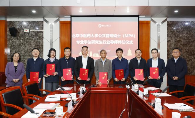 仪式现场,王瑶琪书记与王停副校长共同为行业导师颁发聘书。此次受聘的行业导师阵容兼具广度与深度,涵盖行业学会、三甲医疗机构、医药健康企业、兄弟高校等领域的资深管理者与专家,平均拥有 10 年以上卫生健康领域管理经验,其专业背景覆盖卫生政策制定、医院运营管理、公共卫生应急、中医药产业协同等关键方向,将为我校 MPA 实践教学提供多元视角。