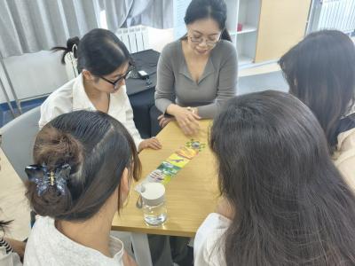 活动伊始,张瑶萱老师组织同学们通过抽取卡牌的方式随机分组。每个人抽取一张充满神秘色彩的卡牌,随后找到自己的“组织”。各小组成员围坐在一起,分享自己对于手中卡牌的解读。同一张卡牌在不同同学的眼中焕发出各异的光彩,联想天马行空、充满想象力:有人从抽象的图案中读出了故事与愿景;有人联想到自然万物与宏大景象,也有人联想到细腻情感与生活趣事。每一张卡牌都像一面镜子,映照出每个人独特的内心世界与思维光谱。