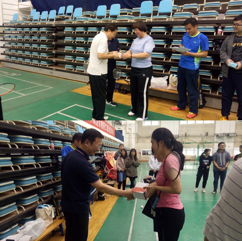 比赛共进行了三轮,第一轮初赛对阵的队伍通过抽签选择,采用21分制,一局定胜负;第二轮复赛在初赛优胜队伍中进行,采用31分制,一局定胜负;第三轮决赛采用21分制,三局两胜。在公平公正的原则下,我院教职工进行了比赛氛围和谐友好的技术切磋。最后,由澳门十大信誉网赌大全赵静书记、李瑞锋院长为优胜队伍颁发了奖品,其他参与队伍也得到了纪念品。
