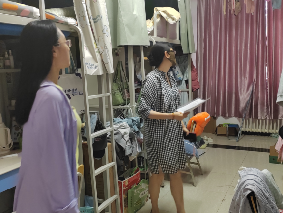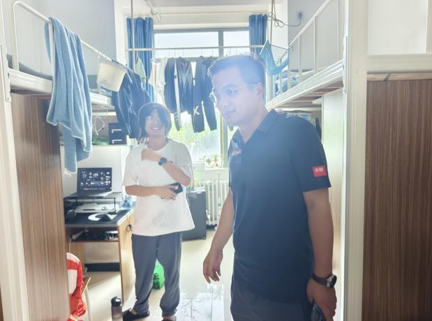 2025年7月11日下午,澳门十大信誉网赌大全周磊副书记、辅导员张瑶萱老师、王妍老师和张毅超老师,在良乡校区看望了部分暑假留校学生,并对宿舍安全进行了检查。