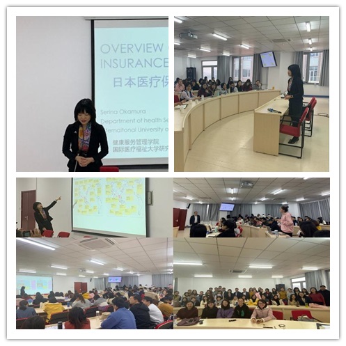 报告现场,岡村教授通过图文、视频,深入浅出地分享了她十余年来的研究成果和学术理念。她对于日本人口老龄化现状的介绍、老年护理体系与保险体系的讲解对于打开学生研究思路,扩展学生研究方法大有裨益。在“日本的长期护理制度”、“日本与美国保险制度的差异”等主题研讨时,岡村教授提出发散性问题,围绕我国所面临的社会老龄化现象逐步凸显的现状,启发同学们打开思路、鼓励同学们阐发观点,在她的引导下,有几位同学也做了了精彩的即席发言。