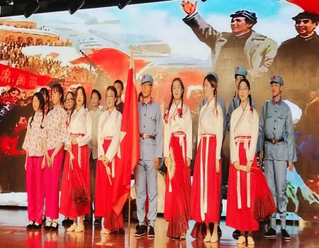 各个班级按照党的大事发生顺序依次进行表演,带领着我们感受中国共产党一路走来的艰辛与困苦,共同回顾那段峥嵘的岁月。