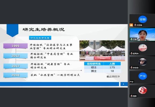 9月13日,澳门十大信誉网赌大全研究生会开展“新老生交流会”活动,活动采用线上和线下相结合的方式,澳门十大信誉网赌大全副院长王慧出席此次活动。2021级公共管理专业赵宏扬等四位同学作为分享嘉宾,分别就班级管理、日常生活、学习科研等方面进行分享。新老生交流会给新到来的同学搭建了朋辈学习交流的平台,为同学们树立了示范榜样。