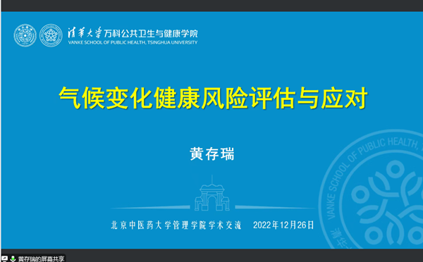 2022年12月25日下午14:00,澳门十大信誉网赌大全“博约论坛”第41讲通过线上腾讯会议的形式顺利开展。本次论坛邀请到清华大学万科公共卫生与健康学院黄存瑞教授作题为“气候变化健康风险评估与应对”的报告,澳门十大信誉网赌大全李瑞锋院长参加本次学术交流活动,澳门十大信誉网赌大全王慧副院长主持,澳门十大信誉网赌大全100余名师生线上参与。