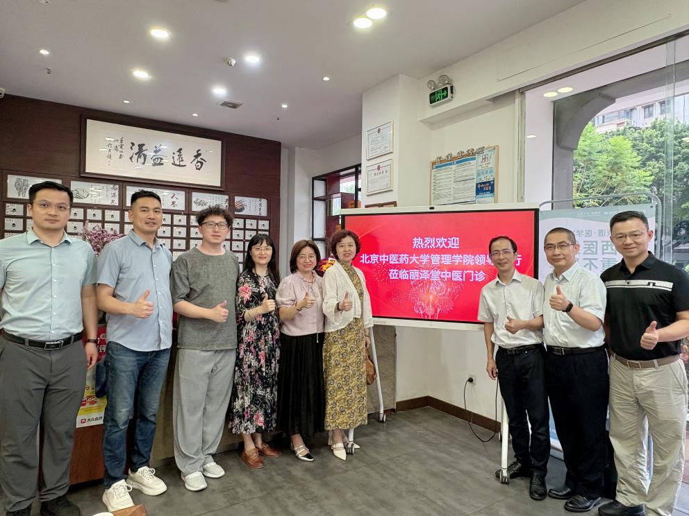 团队先后走访校友医馆——杏园春暖中医馆、丽泽堂中医门诊部,与广东校友会秘书长黄斌、副会长孔嘉宜、96药管郭芳、93卫管马四龙以及陈耿济、杨杰、白琳琳等校友进行座谈交流。座谈会上,李蔓荻书记系统介绍了学院在学科建设、师资优化及人才培养方面的新进展,强调校友资源对学院发展的重要作用,提出构建"院-友"协同发展平台的愿景。周磊副书记重点分享了学生职业发展服务体系的创新实践,倡议校友通过导师计划、实践基地共建等方式反哺母校。