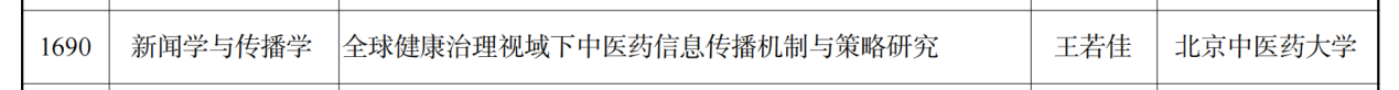 近日,全国哲学社会科学工作办公室正式公布了2025年度国家社会科学基金项目立项名单,澳门十大信誉网赌大全王若佳老师申报的青年项目《全球健康治理视域下中医药信息传播机制与策略研究》成功获批,标志着我院在社科高水平科研项目申报方面再获重要突破!