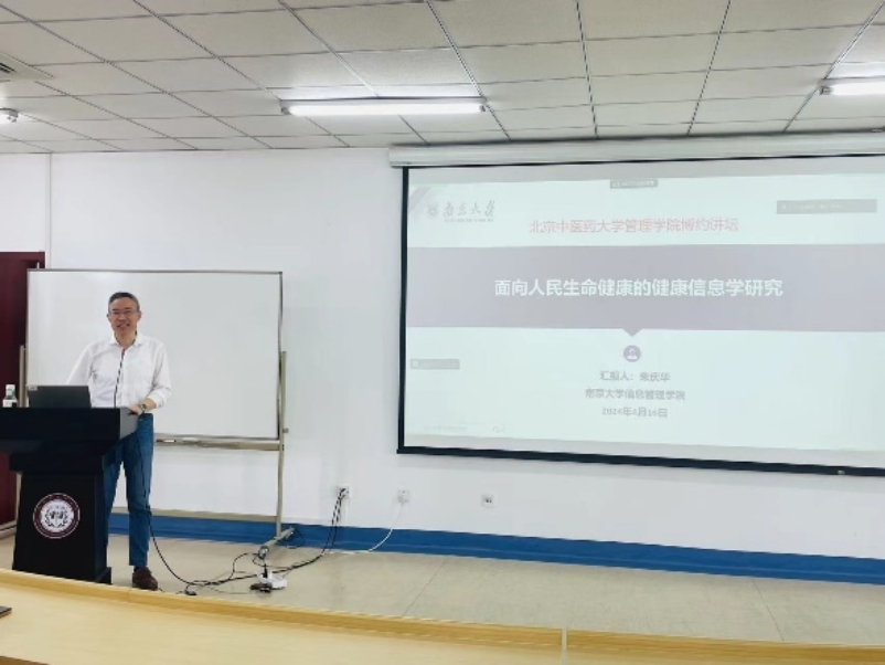 朱教授首先讲到“健康中国战略”的提出有助于全面提升中华民族健康素质,实现人民健康与经济社会协调发展。随着信息技术的不断发展,人民对健康事业的不断关注,一门研究如何利用信息技术来满足用户有效获取健康信息,解决相关健康问题、支持医学决策的新兴交叉学科—健康信息学应运而生。之后,朱老师从信息技术普及、健康事业关注度上升、相关学科研究基础等主要介绍了健康信息学的研究背景,探讨了健康信息学的概念界定即概念由来及概念内涵,总结了健康信息学的研究现状及研究趋势,通过信息生命周期来讲解了健康信息学的研究视觉。最后,分享了团队在健康信息学领域已经完成和正在进行的研究成果。