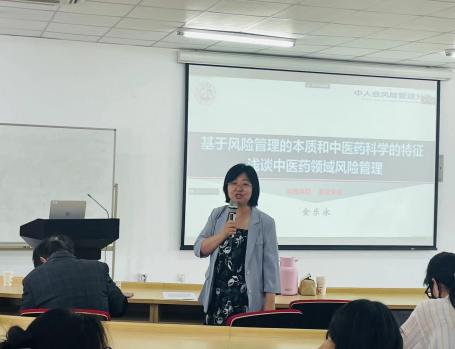 金教授的讲座主要从风险管理的本质、对中医药领域风险管理的认识和关于中医药领域风险管理的思考三个方面展开。第一部分从党中央的文件和部署引入,讲解了风险管理的基础理论,强调要辩证认识风险管理的本质,辨析了风险管理与常规管理的方法,使大家对所学专业有了更为深刻的认识。第二部分金教授表示自己通过准备本次讲座,发觉中医药科学具有风向管理天赋特征,提出“深刻认识中医药科学与风险管理的关系,继承发扬中医药科学中的风险管理思想,运用唯物辩证思维方法、增强防范化解风险本领,大力推进现代科技与中医药科学结合,依法从业、增强中医药行业法律风险免疫力”五点思考。